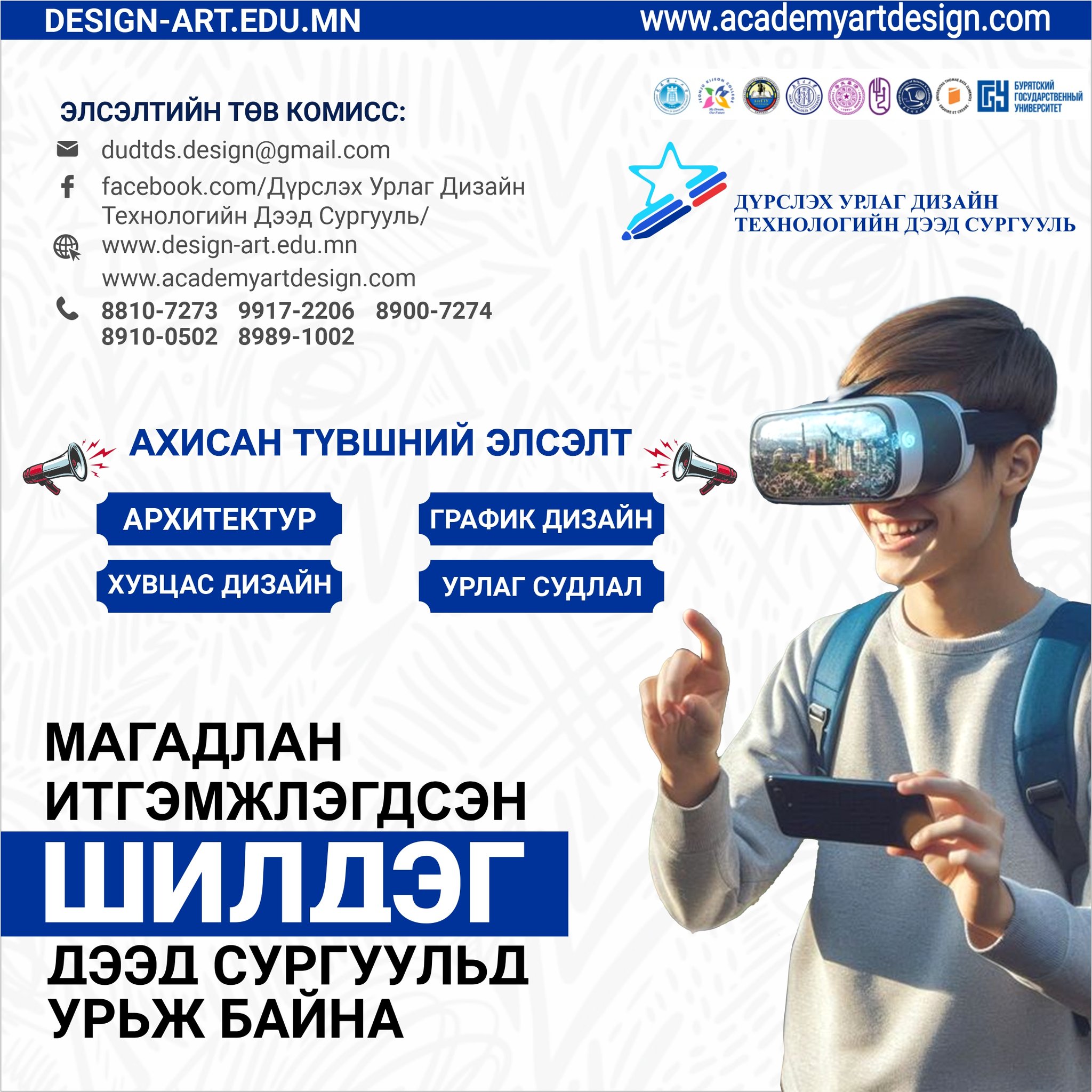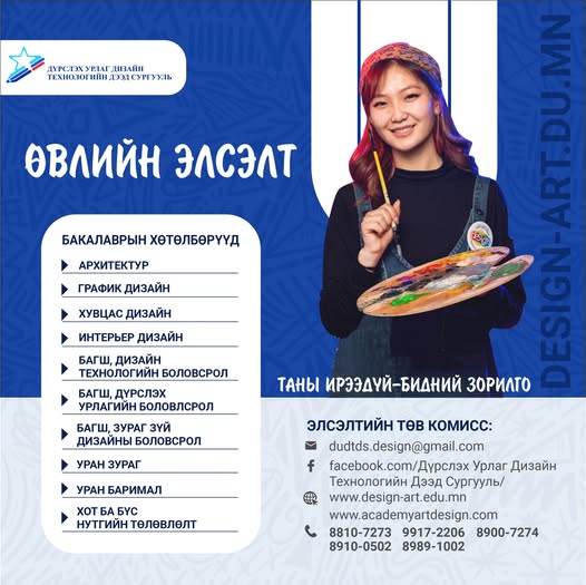 © 2026 Дүрслэх Урлаг Дизайн Технологийн Дээд Сургууль. Бүх эрх хуулиар хамгаалагдсан. Вэб хөгжүүлэгч Mind Agency